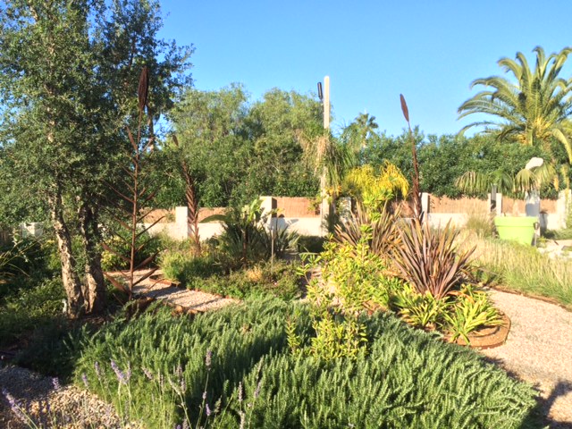 A new constructed modern property. The owners were excited to have a garden without any lawn. A garden was designed with many pathways along the planting borders. The site was completely levelled and filled with earth. Pathways were created with corten steel and pebbles to walk on which are leading towards the various places to relax. Beautiful materials all combined to create a modern rustic space to relax. The garden boasts soft organic lines which complement the lush informal planting scheme. Ready for entertaining this one is!