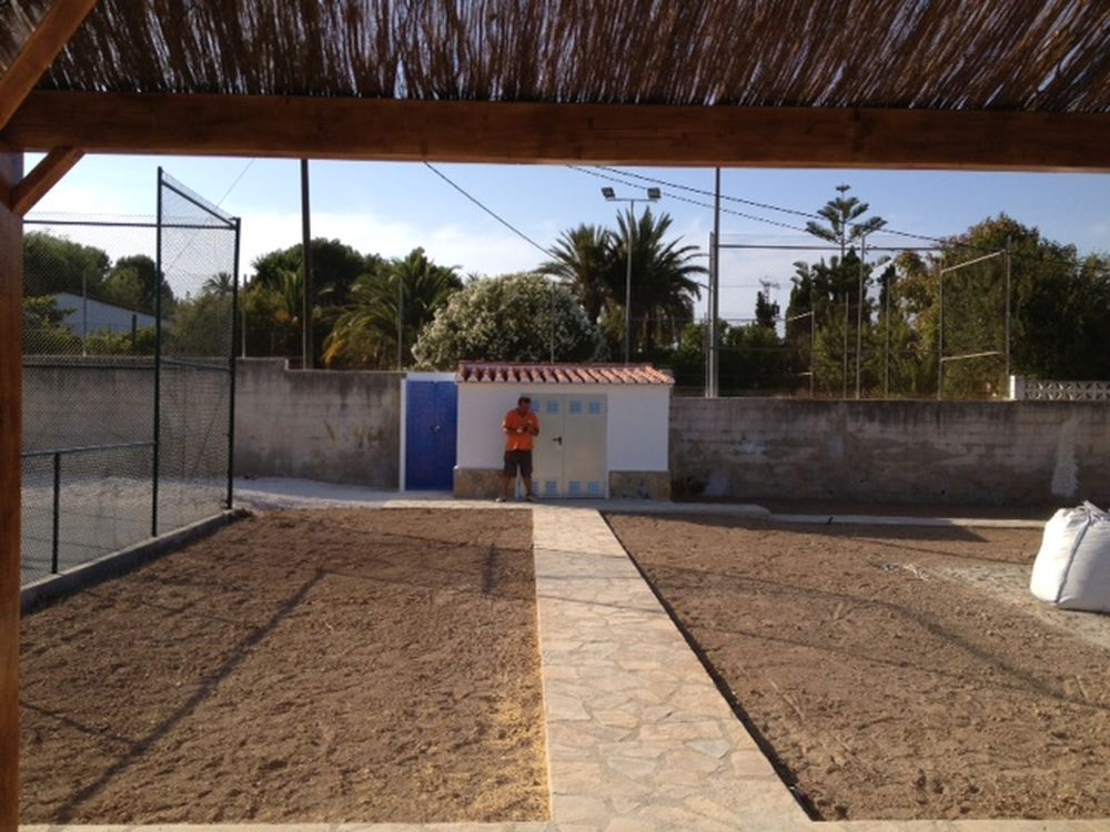 For this client we created various playgrounds. The 3rd and 4th part of the garden were completely levelled and prepared to install a tennis court, beach volleyball playground and exterior shower. Also around the playfields pathways were created and lawn was seeded.